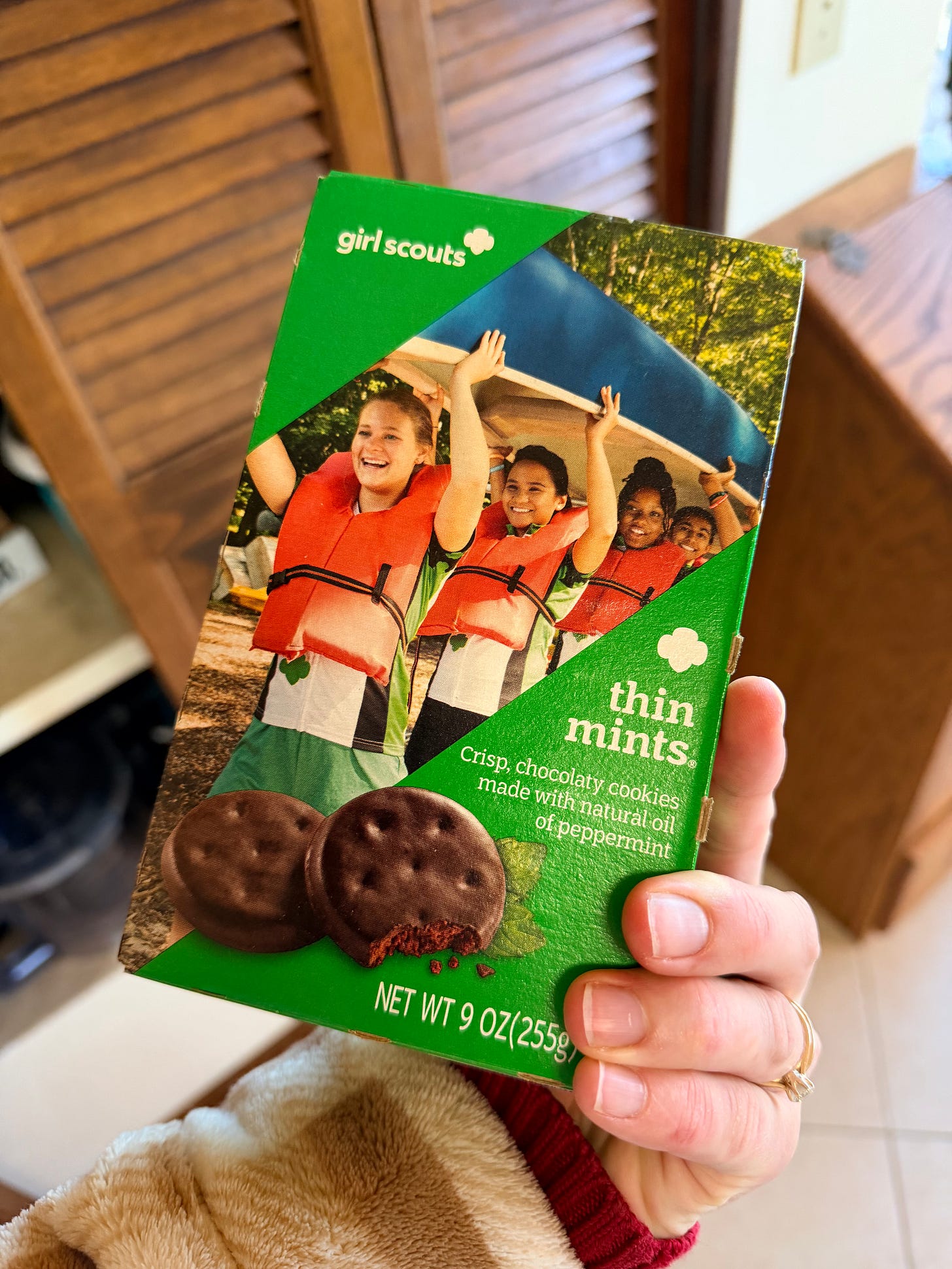 It’s been a big week for chocolate in our house. Sam and his folks went out on a little adventure a few towns over last weekend and returned with some locally-made Dubai chocolate, which neither of us have ever actually tried and it was simply fabulous. I would eat that every day. I still think about it. And then, of course, it’s Girl Scout cookie season. Or at least it is here, anyway. I don’t know the rules. But the Girl Scouts were selling at our local grocery store and it was like the heavens opened up before me. As I was waiting in line, I asked the young girl scout screaming “COOKIES FOR SALE” which cookie was her favorite so I could pick that one, and to my dismay, she walked over and pointed to the Thin Mints. Look, I know people love Thin Mints, and I’m not trying to be a hater. They have a delightful texture, I’m just not a mint chocolate girl. And in my mind, when there are Tagalongs, what are you doing picking Thin Mints? Silly girl. So I got my two boxes of Tagalongs, my two boxes of Samoas, and my obligatory box of Thin Mints because who am I to disappoint her. Let’s just say 4 out of 5 boxes are gone, and there’s but one still sitting in the cupboard:
